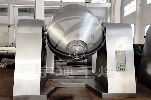 由于罐體內處于真空狀態,各種物料中的溶媒(包括水)在真空的條件下均能在較低的溫度迅速汽化,且罐體的回轉使物料不斷地上下、內外翻動,物料不斷地更新與器壁接觸的表面,從而充分利用了器壁所傳導的熱量,加快了物料的干燥速度,提高干燥效率,并能達到均勻干燥的目的。